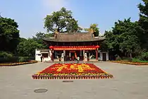 Guangxiao Temple (Chinese: 光孝寺) is one of the oldest Buddhist temples in Guangzhou, the capital of China's Guangdong Province.[1] As the special geographical position, Guangxiao Temple often acted as a stopover point for Asian missionary monks in the past. It also played a central role in propagating various elements of Buddhism, including precepts school, Chan (Zen), Shingon Buddhism, and Pure Land. In this temple, Huineng, the sixth Chinese patriarch of Chan Buddhism, made his first public Chan lecture and was tonsured, and Amoghavajra, a Shingon Buddhist master, gave his first teaching of esoteric Buddhism.[2] Many Buddhist scriptures were also translated here, including those translated by Yijing and the Shurangama-sūtra translated by Paramitiin (般剌密諦).[2]