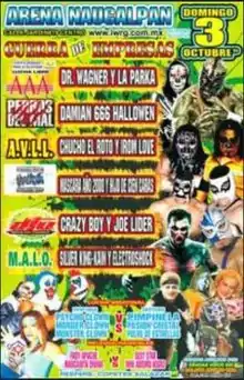 4Los Junior Dinamitas (El Hijo del Cien Caras and Máscara Año 2000, Jr.), Dr. Wagner, Jr. and La Parka defeated Crazy Boy and Joe Líder, Los Compadres (Chucho el Roto and Iron Love), Los Maniacos (Electroshock and Silver Cain) and Los Perros del Mal (Bestia 666 and Damian 666)2010 Guerra De Empresas battle royal