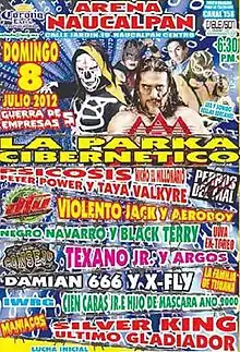 Official poster depicting (clockwise) Negro Navarro, Silver King, Cibernético, La Parka and Último Gladiador
