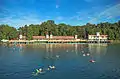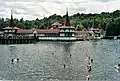 Between 1944-46 the buildings were used as a hospital first by the German then by the Soviet army. In 1948 a period of state ownership came. The State Medicinal Bath, Hévíz (It is the St. Andrew's State Hospital for Rheumatology and Rehabilitation today.) was established by the Ministry of Health on 1 January 1952. The number of visitors tripled then quadrupled. The machinery of the hospital and the treatments were made up to date. By 1968 it has become Hungary's most modern winter bath. For the reconstruction of the bath in the 1970s Austrian larch was used. 1986 3 March central buildings of the bath (in the lake) burnt down. In September 1989 the reconstruction of the destroyed parts was finished. The new set of buildings was more attractive and up to date than the previous one. To day the area of the Institution is 620,000 square metres. The plans of further reconstruction of the park and buildings were completed between 2000 and 2002.