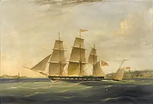 ![]() The whaler Matilda off Tilbury Fort on her way to the South Seas whale fishery; James Miller Huggins (1807–1870). National Maritime Museum, Greenwich | |
