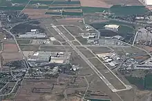 Hagerstown Regional Airport covers 693 acres (280 ha) at an elevation of 703 feet (214 m). It has two asphalt runways: 9/27 is 7,000 by 150 feet (2,134 x 46 m) and 2/20 is 3,165 by 100 feet (965 x 30 m).[1]