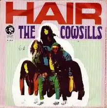 The song was a major hit for the Cowsills in 1969 and their most successful single. The Cowsills version cuts out most of the religion-themed lyrics, changing "long as God can grow it" to "long as I can grow it" and removing some verses. Their version spent two weeks at number one on the Cash Box Top 100[5] and reached number two on the Billboard Hot 100.[6] "Hair" was kept out of the number-one spot by another song from the Hair cast album: "Aquarius/Let the Sunshine In" by The 5th Dimension.[7] It also reached number one on the RPM Canadian Singles Chart.[8]