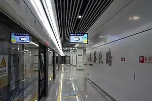 Haiyan North Road Station (Chinese: 海晏北路站; pinyin: Hǎiyàn Běilù Zhàn) is an interchange station on Line 1 and Line 5 of the Ningbo Rail Transit that started operations on 30 May 2014. It is situated under Ningchuan Road (Chinese: 宁穿路) in Yinzhou District of Ningbo City, Zhejiang Province, eastern China.[1]