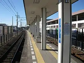 The station has a single island platform, connected to a two-story station building. The station building has automated ticket machines, and automated turnstiles which accept the NicePass smart card, as well as ET Card, a magnetic card ticketing system. The station is attended.