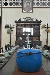 After the “Great Fire of Ipoh” on June 1, 1892, Fee built some of the first brick houses in Leech Street in 1893.[3] That same year, on the 5th day of the 5th moon, he formed the Han Chin Tin Miners' Club, a two-story shophouse where the museum stands today.