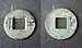 In 119 BCE, the Ban Liang was replaced by the San Zhu (三銖, of weight approximately 2 g), and from 118 BCE, the Wu Zhu (五銖, around 3.25 g).[5] First issued in 118 BC, this inscription was used on cash coins of many regimes both inside and outside of China over the next 700 years.[4] Sometimes Wu Zhu cash coins can be specifically dated from dated moulds that have been discovered, or from their find spots, but the majority of cash coins with this inscription cannot.[4] The Wu Zhu cash coins of the Western Han Dynasty have a square top to the 朱 component of "Zhu" (銖) character; on later Wu Zhu coins, this character is rounded.[4]
