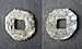 Some variants of the wǔ fēn Ban Liang cash coins tend to have very broad outer rims, which includes their inscriptions protruding well above the surface of the square central hole.[15]