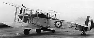 The first flight of the Harrow was made by Hubert Broad on 24 April 1926.[1] A number of minor issues emerged from the early flying programme, but one consistent theme was that of engine overheating. By the end of May the Harrow was taking off and landing on HMS Furious as part of the specification competition. It went to RAF Martlesham Heath for further Air Ministry specification tests late in August. In December it was replaced there by the second prototype which had first flown on 30 October 1924. By the spring of 1927 it was clear that the Blackburn Ripon was preferred, and in June the second prototype was returned to Handley Page rather than going forward to the seaplane trials, chiefly because of its persistent overheating. Nonetheless, Handley Page gained funding for a Harrow Mk II using a more powerful Napier Lion XI engine producing 530 hp (395 kW) in the first prototype airframe.[1] This engine was housed in a slimmer, more pointed cowling with a semi-circular cross-section radiator under the nose. At the same time drag was reduced and rudder and elevator lightness improved by lowering the rear fuselage decking and with it the gunner's position. Later in the summer a Lion XA was fitted, together with a larger, square radiator. Further modifications to the Mk II followed with the addition of dihedral to both wings, a slimmer nose and retractable side radiators like those on its competitor, the Ripon II. There were further modifications to flaps and slots before the aircraft went back to Martlesham to compete against the Ripon II and the Avro Buffalo II, performing torpedo dropping trials before going to Felixstowe as a floatplane. Here it proved unsatisfactory, suffering water spray damage, and was written off charge in August 1928.[1]