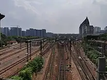 Hangzhou railway station (Chinese: 杭州火车站; pinyin: Hángzhōu Huǒchē Zhàn or Chinese: 城站; pinyin: Chéng zhàn; lit. 'station in city') is located in Shangcheng District, Hangzhou, Zhejiang Province of China.[2] It is affiliated to Shanghai Railway Bureau, and is also the terminal of the Shanghai–Hangzhou Railway. The station is ranked first-class.