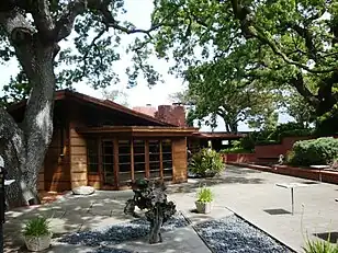 The Hanna–Honeycomb House, also known as simply the Hanna House, located on the Stanford University campus in Stanford, California, United States, was Frank Lloyd Wright's first work in the Bay Area[3] and his first work with non-rectangular structures.[4] The house was chosen by the American Institute of Architects as one of seventeen buildings by the architect to be retained as an example of his contribution to American culture. It was recognized as a National Historic Landmark on June 29, 1989.