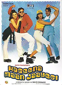 Haseena Maan Jaayegi (transl.The beauty will agree) is a 1999 Indian Hindi-language comedy film directed by David Dhawan. It stars Govinda, Sanjay Dutt, Karisma Kapoor and Pooja Batra, with Anupam Kher, Kader Khan, Aruna Irani, and Paresh Rawal in supporting. The film is thematically inspired by the 1966 film Pyar Kiye Jaa. It released on 25th June 1999 with positive critical reception and went on to become the fifth-highest-grossing Hindi film of 1999. It is often regarded as being amongst Govinda's greatest performances and he won many awards for his role as Monu and Chachaji.