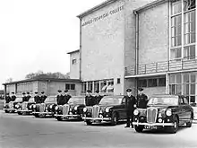 The original campus for the university was at Roe Green in Hatfield, where it was founded as a technical college with a particular focus on training aerospace engineers for the aerospace industry that was then prevalent in Hatfield. The Gape family of St Michael's Manor in St Albans owned the land at Roe Green from the late 17th century. In the 1920s they sold it to Hill, a farmer, who then sold it to Alan Butler, chairman of the de Havilland Aircraft Company who lived at Beech Farm nearby. In 1944 he donated 90 acres (36 hectares) of land at Roe Green to be used for educational purposes.[8] In 1948 building commenced. The first principal W.A.J Chapman started on 1 January 1949 and in spring 1952 the 33 full-time and 66 part-time teachers were appointed. Hatfield Technical College opened with 1,738 students in September 1952 and in December officially opened by Prince Philip, Duke of Edinburgh. It was the first large technical college to be established in England after the war.[9] Students attended the college on part-time or full-time courses.[10]