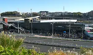 Hazawa yokohama-kokudai Station (羽沢横浜国大駅, Hazawa-Yokohama-Kokudai-eki) is a railway station on the Sōtetsu Shin-yokohama Line and Tōkaidō Freight Line.[1] It is located in Kanagawa-ku, Yokohama, Kanagawa Prefecture. This station is jointly operated by Sōtetsu (Sagami Railway), with station number SO51, and JR East.