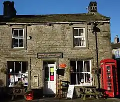 The village stores and post office shut at the end of 2013 after 100 years of trading.[45] The gold painted George V Type E wall post box was removed from the outside wall of the post office (now an exhibit in the Postal Museum), and replaced with a modern gold painted lamp box a few metres away;[46] and the K6 Tudor Crown phone box was decommissioned, and set up at the cross-roads as a street ornament.[47]