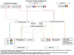 The play-off was scrapped for the 2009–10 season due to changes made that season by the competition organisers, European Rugby Cup, that will take effect with the 2010–11 Heineken Cup.[2] The new qualifying system is as follows: