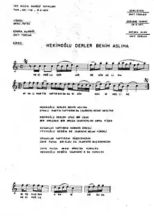 5. "Hekimoğlu Derler Benim Aslıma| Türk Halk Müziği". www.notaarsivleri.com. Retrieved 30 December 2023.