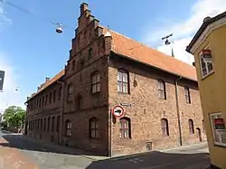 On 11 July 1516, Christian II of Denmark granted the brothers at Helsingør's Carmelite Priory permission to build a hospital for "poor, sick foreign seamen for rest and something, help and comfort".[1] The building, located on present day Hestemøllestræde to the south of the priory's chapel, was 25 and contained 8M10 beds. After the dissolution of the priory in 1536 during the Reformation, the Carmelites were turned out. The hospital was sold to Asgud Mikkelsen who constructed a horse mill at the site. Herluff Trolle, who had become Seignor of Krogen in 1544, acquired the property in 1550. He extended the one-storey hospital building westwards with a two-storey townhouse. It is likely that Trolle intended to expand the house further but he left Helsingør when he was appointed to Seignor of Copenhagen Castle in 1561. The house in Helsingør was instead granted by Herluff and Birgitte Trolle to the city's grammar school.