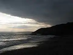 Hemmick Beach is a west-facing beach on the south coast of Cornwall, England. It is situated at the east end of Veryan Bay, on the west side of the Dodman Point headland, and to the south of the hamlet of Boswinger and to the west of Penare.[1]