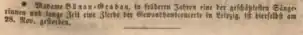 Death notice of Madame Bünau-Grabau in the newspaper Signale für die musikalische Welt, 1852 issue 49, p. 441
