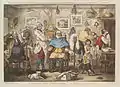 His more serious efforts were no great success, but his caricatures are as famous as those of his contemporaries Thomas Rowlandson and James Gillray, good examples being his A Long Story (1782), Country Club (1788), and Barber's Shop (1803). He was a popular character, and the friend of most of the notabilities of his day, whom he never offended by attempting political satire; his easy circumstances and social position (he was commissioned as lieutenant-colonel of the West Suffolk Militia on 26 August 1788,[4] and was appointed equerry to the Duke of York and Albany in 1787) allowed him the leisure to practise his talents.[2]
