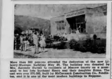 2. 1 2 "Dedication of Museum-Library Set for Sunday Afternoon". Heppner Gazette-Times. University of Oregon Libraries, Image provided by: Morrow County Museum; Heppner, OR. 26 May 1960. Retrieved 10 November 2017.