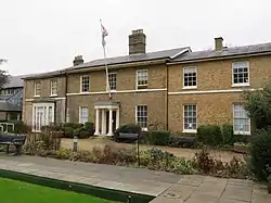 The council initially met at the Shire Hall in Hertford, as the predecessor rural sanitary authority had done.[4] Administrative office functions were carried out at 24 Castle Street, which was the offices of the solicitors who acted as clerks to the council.[5][6][7] By 1933 the council was using the adjoining house at 20 Castle Street as its offices.[8] The council remained at 20 Castle Street until 1950, when it bought to a large house called Wallfields on Pegs Lane and converted it to become its headquarters.[9] The council remained based at Wallfields until its abolition.