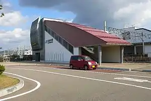- ↑ 駅 別 運 輸 実 績 [Station passenger figures (Fiscal 2015)] (PDF) (in Japanese). Japan: Ishikawa Prefectural Government. 2016. Retrieved 2 January 2018.