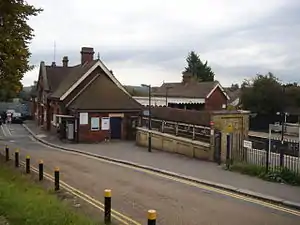 High Brooms was originally opened in 1893 as Southborough by the South Eastern Railway; it acquired its present name in 1925. It is situated on a five-mile gradient from Tonbridge to the north of the station.[1] The main station buildings are on the northbound platform. There is a closed waiting room on the southbound platform. Access to the southbound platform is via stairs from a side entrance, and access to the northbound platform is at street level. A subway links the two platforms.