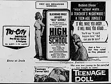 Drive-in advertisement from 1958 for High School Confidential with co-feature, Teenage Doll.