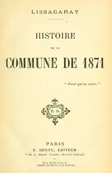 Histoire de la Commune de 1871 (History of the Paris Commune of 1871) is a history of the Paris Commune by Prosper-Olivier Lissagaray. Published in 1876, it is the event's definitive eyewitness assessment. It was later translated into English and German.