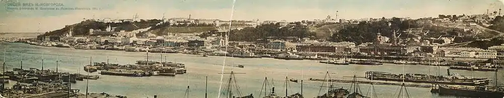 In April 1908, one of the strongest floods occurred. There were flooded: Rozhdestvenskaya Street, Kazansky Railway Station, Bugrov Mills and Kurbatov Plant.[15] Also populated settlements-satellites were flooded: Sormovo, Gordevka, Kunavino and Molitovka. Which later became part of the city.