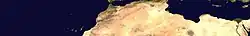 North Africa is a relatively thin strip of land between the Sahara desert and the Mediterranean, stretching from Moroccan Atlantic coast to Egypt. The region has no set definition, and varies from source to source. Generally included are, from west to east, Morocco, Algeria, Tunisia, Libya and Egypt.[1] The area located at the south of the desert is a steppe, a semi-arid region, called the Sahel. It is the ecoclimatic and biogeographic zone of transition in Africa between the Sahara desert to the north and the Sudanian Savanna to the south. The Sudanian Savanna is a broad belt of tropical savanna that spans the African continent, from the Atlantic Ocean coast in the West Sudanian savanna to the Ethiopian Highlands in the East Sudanian savanna.
