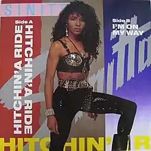 "Hitchin' a Ride" was covered by American singer Sinitta. It was released in 1990 as the fifth and final single from her second album Wicked (1989). The song was produced by Ralf Rene Maue. The B-side contains a previously unreleased song "I'm On My Way". This single reached number 24 in the UK,[19] number 19 in Ireland, and number 131 in Australia.[20]