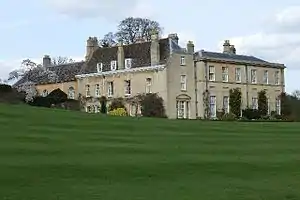 Holywell Hall is a Grade II* listed 17th-century country house, built on the site of an older medieval manor house.[8] It was built in three phases. Beginning as an L-shaped house, it was extended in either 1732 or 1764, and again in the early 19th century. The west front of the house is possibly from 1764, and the south and east fronts from the 19th century.