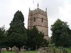 A habitation was recorded in 1327 at Barton End, named after a barton on the manor estate.[3] The village sprung from cross-roads east of St Martin Church. The Parish is bisected from south to north by the Bath-Gloucester, built in 1780.