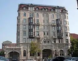 Hotel Kernan, also known as the Congress Hotel, is a historic hotel located at Baltimore, Maryland, United States. It is a six-story plus mansard roof, French Renaissance Revival-style structure detailed in brick and terra cotta. It is constructed of steel and reinforced concrete and is U-shaped in plan. It was designed in 1903 by Philadelphia architect John Allen for theatrical impresario James Lawrence Kernan (1838-1912), who lived at the hotel until his death in 1912.[2]