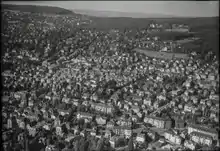 Adlisberg and Hottingen, as seen from Uetliberg, Seefeld quarter in the foreground, Grand Hotel Dolder in the background (October 2009)