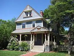 The House at 57 Woburn Street in Reading, Massachusetts is a Queen Anne style house designed by architect Horace G. Wadlin and built c. 1889 for Alfred Danforth, railroad employee who served for a time as Reading's town clerk. It is one of the town's more elaborate Queen Anne houses, with patterned shingles and an ornately decorated porch. The front-facing gable is particularly elaborate, with wave-form shingling and a pair of sash windows set in a curved recess.[2]