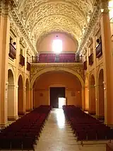 The house exercised an important artistic patronage. Examples of this, in the architectural field, are the Palace of Medina Sidonia in Sanlúcar de Barrameda,[19] the Palace of the Counts in the city of Huelva, the Palace of Medina Sidonia in Seville (now demolished)[20] the Monastery of San Isidoro del Campo in Santiponce, the Monastery of Dominicas de Madre de Dios in Sanlúcar, the Convent of Santo Domingo in Sanlúcar, the Sanctuary of Nuestra Señora de la Caridad Coronada in Sanlúcar, the Convent of La Merced in Sanlúcar, the Castle of Santiago, the Castles of Niebla, Trigueros and Barbate, the Castle of Zahara de los Atunes and Palace of Jadraza and a long etcetera. As for painting and sculpture, the works commissioned to Francisco Juanete and Francisco de la Gándara stand out. Likewise, the works of silverware by Luis Sánchez and Jacques de Uparque, and the sons of the latter Juan and Pedro.[21] In the literatio, the Tarifa exploit of Guzmán el Bueno has been the subject of numerous works, among them the one written by Tomás de Iriarte. Attributed to Cervantes, the Soneto a la entrada del duque de Medina en Cádiz, is dedicated to the 7th Duke. Góngora dedicated his Fábula de Polifemo y Galatea to the Count of Niebla.