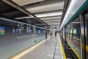 Hualinsi Buddhist Temple Station (simplified Chinese: 华林寺站; traditional Chinese: 華林寺站; pinyin: Huálínsì Zhàn) is a station of Guangzhou Metro Line 8, located underground on the intersection of Middle Kangwang Road, Changshou West Road, Liwan District, Guangzhou, Guangdong Province, China. The station was opened on November 26, 2020, with the opening of the northern extension of Guangzhou Metro Line 8.[1]