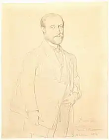 Rohault de Fleury was not satisfied with the seagoing life. He tried to go into business but failed. He became absorbed in painting and drawing, which became a lifetime occupation. He met Louise Marcotte, and they were married at Notre Dame de Lorette in 1857.[4] Louise Marie Chantal Marcotte (1833–1873) was the second daughter of Charles Marcotte d'Argenteuil, the friend and benefactor of Jean Auguste Dominique Ingres. Ingres drew a portrait of Louise Marie in 1868, and ten years later drew a portrait of Hubert Rohault de Fleury.[5] A first child, Jacques, was born in 1858. Louise had a miscarriage in 1862, then gave birth to Charlotte in 1864. After this they decided to have no more children.[4]