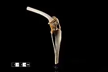 A hygroma, or a false bursa, is a discrete, fluid-filled sac that can form on the joints of dogs in response to repeated pressure, such as that from sitting on a hard surface.[1] It is treated by draining the fluid and may be prevented by providing padded bedding.