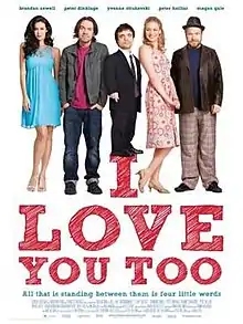 I Love You Too is a 2010 Australian romantic comedy film,[2][3][4] and the directorial film debut of Daina Reid. The screenplay was written by first-time writer Peter Helliar.[5] It stars Brendan Cowell, Peter Dinklage, Yvonne Strahovski, Peter Helliar and Megan Gale, and was produced by Princess Pictures on a budget of A$6 million.[1] Principal photography began on 4 May 2009 and took place in Melbourne.[6]