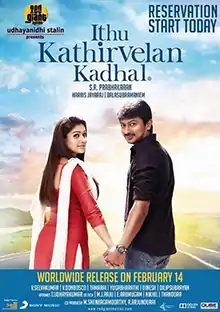 Ithu Kathirvelan Kadhal (transl.This Is Kathirvelan's Love) is a 2014 Indian Tamil-language romantic comedy drama film written and directed by S. R. Prabhakaran starring Udhayanidhi Stalin and Nayanthara.[1] Santhanam and Sunder Ramu play important roles in the film while Saranya Ponvannan and Chaya Singh play supporting roles.[2] Produced by Red Giant Films, the film has cinematography by Balasubramanium and art direction by V Selvaraj.[3]