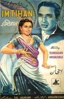 Imtihaan (transl."Test") is a 1949 Bollywood Hindi romantic drama film directed by Mohan Sinha[1] and starring Madhubala and Surendra in lead roles.[2]