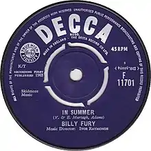 "In Summer" is a song by English singer Billy Fury, released as a single in July 1963. It peaked at number 5 on the Record Retailer Top 50.[2]