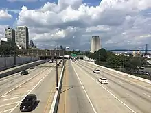 I-95 southbound approaching the I-676/US 30 interchange in Center City Philadelphia
