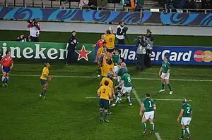 - ↑ "Rugby World Cup 2011: Australia 6–15 Ireland". BBC Sport. 17 September 2011. Retrieved 17 September 2011.