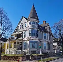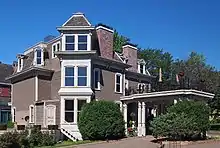The Murray-Lanpher House was designed by Edward P. Bassford in 1886. Architectural critic Larry Millett writes, "This is probably what most people have in mind when they dream of a Queen Anne house."[2] |
